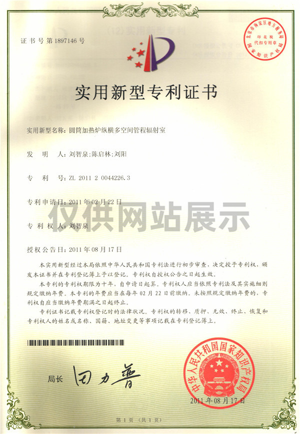加熱爐豎管內(nèi)空間臺(tái)式管程輻射室