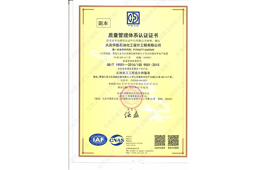 我公司具有化工工程專業(yè)甲級,石油及化工產(chǎn)品儲(chǔ)運(yùn)、煉油工程、管道輸送、油田地面、制漿造紙工藝、城鎮(zhèn)燃?xì)夤こ?、建筑工程乙級設(shè)計(jì)資質(zhì),石化、建筑乙級咨詢資質(zhì),并通過了ISO9001質(zhì)量管理體系的認(rèn)證、環(huán)境管理體系認(rèn)證和職業(yè)健康安全管理體系認(rèn)證,具有Ⅰ、Ⅱ、Ⅲ類壓力容器設(shè)計(jì)資格證及壓力管道設(shè)計(jì)資格證。